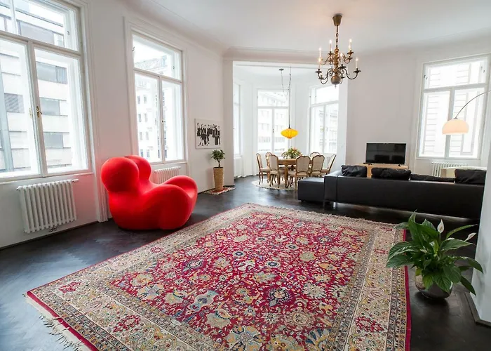Surplombant la ville, Grand Soho Apartment Vienne de 200 m² se trouve à moins de 20 minutes de marche de la crypte des Capucins à Vienne. Le Wi-Fi et un parking font partie des éléments essentiels à la disposition des clients.